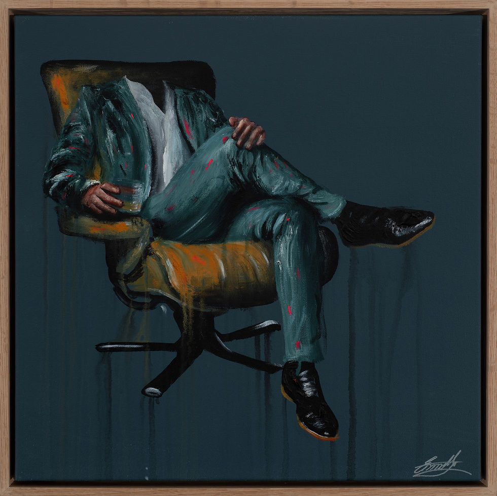 The suits suggest something familiar—masculinity, professionalism, strength—but with the face removed, you're not being told who to see. You’re being asked how it makes you feel. A loosened tie, an open collar, a whisky in hand—these gestures carry more emotion than a smile ever could.
